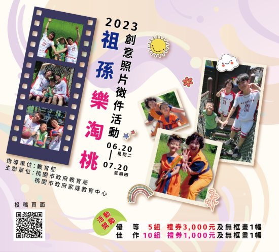 主旨: | 檢送本中心112年「祖孫樂淘桃」創意照片徵件活動海報電子檔,請惠予協助運用貴機關網站或公布欄刊登訊息,請查照。 |